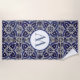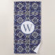 Italian Azulejo Blue White Geometric Monogrammed Beach Towel