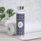 Italian Azulejo Blue White Geometric Monogrammed Water Bottle