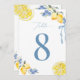 Italian Blue Bow Lemon Wedding 5x7 Table Number