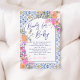 Bring the joy of reading to the newest addition to the family with our Italian-Mediterranean inspired Bring-a-Book Card. Featuring a fresh blue ceramic tile pattern and cheerful hand-painted pink spring/summer wildflowers, this gender-neutral card is a delightful way for guests to contribute to baby's library. With its modern arch shape and elegant brush script, it adds a touch of sophistication to any baby shower. Encourage a love for literature from the very beginning with this charming bring-a-book card!