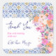 Italian blue tiles floral thank you baby shower square sticker