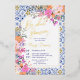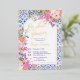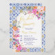This luxurious bridal shower invitation features a stunning combination of Italian-Mediterranean inspired blue ceramic tile patterns with vibrant, hand-painted pink and orange wildflowers, creating a perfect blend of elegance and romance. The invitation is highlighted by elegant gold foil lettering, which adds a touch of sophistication and makes the text shimmer against the intricate background. The modern arch shape frames the text beautifully, drawing attention to the key details of the event. Fully customisable, this invitation is an exquisite choice for a bride-to-be who appreciates a chic and unique design.