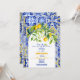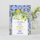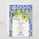 Italian blue tiles watercolor lemon baby shower invitation