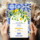Transport your guests to the sunny shores of Italy with our Italian Blue Tiles Watercolor Lemon Baby Shower Collection. Inspired by the vibrant hues of Italian ceramics and the refreshing scent of lemon groves, this collection embodies the essence of Mediterranean bliss, offering a charming and delightful theme for your baby shower celebration.