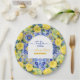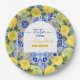 Italian blue tiles watercolor lemon baby shower paper plate