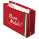 A christmas gift bag with Italian Christmas wish and Italian flag on it. It says "Buon Natale!" wishing a merry Christmas.