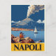 A breathtaking vintage-style travel poster capturing the iconic beauty of Napoli (Naples), Italy. The design dramatically features the smoking Mount Vesuvius towering over the colorful city skyline and the beautiful Bay of Naples. In the foreground, a couple relaxes by the water, adding a romantic touch to the scene. Perfect for lovers of Italian scenery, collectors of retro illustration, and anyone dreaming of the Amalfi Coast and Southern Italy.