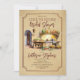 Rustic old world gourmet Italian kitchen "Stock the Kitchen" Bridal Shower design on an aged background with a double gold tone and dark bronze red frame. Back features a diamond shaped gold tone frame over a dark bronze red background.