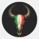 Italian Flag Bull Skull on Black Classic Round Sticker