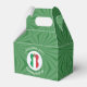 Gable favour box shows our angel wearing the flag of Italy for holiday party decorating or Christmas decor. The Italian Flag Christmas angel is found inside a white, fractal circle of squiggly squares. The background is a green fractal squiggly squares. Add your own text or personalise with a name and the year. Make your Christmas party stand out with Italian flag angel Gable favour boxes for your guests.