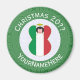 Round magnet for Christmas decor featuring an angel dressed in the Flag of Italy, with green shamrocks for eyes. The angel is found inside a white fractal circle of squiggly squares with a background of green squiggly squares. Add your own text, if you wish. Personalise with a name and customise with the year. Fun stocking stuffer. Share your Italian heritage during the holiday season.