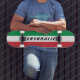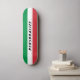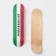 Patriotic Italian flag custom name skateboard deck. Cool wooden skate board design for boys and girls. Fun Birthday gift idea for kids. Personalise with custom name or monogram letters. Awesome Birthday gift idea for children, son, grandson, nephew, cousin, daughter, sister, brother, friends etc. Modern typography template. Tricolore country flag of Italy design with modern typography template.