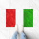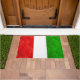 This custom Italian doormat features a full image of the flag of Italy in an oil abstract design. The vibrant colour of Italy in red, white, and green, are printed vertically down the pillow, resembling the flag.