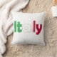 Accent your home with the Italian Flag! This patriotic, 100% cotton throw pillow prominently features the word "Italy" written in the colours of the flag of Italy on the front and back.