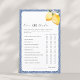 Have fun at your bridal shower/bachelorette with this cool game, featuring white watercolor lemon floral and editable text. Customise it if necessary by clicking on the "edit using design tool".