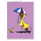 Hand drawn illustration of an Italian Greyhound in yellow rain slicker holding an umbrella over a little duck. Great art for dog lovers, back to school, teachers, april fool's and baby showers.