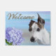 Italian Greyhound image with flowers on a pastel background with the text "Welcome."