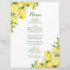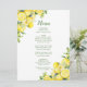 Wedding menu with lemons and greenery. Perfect for a spring summer wedding. The words can be changed to suit your own details or requirement