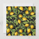 Elegant Italian lemon pattern in bright yellow and green set dramatically against a black background.