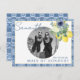 Blue yellow Mediterranean Italian tile with floral lemons photo wedding brides proposal Will you be my maid of honour card, photo card.