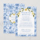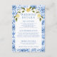 Immerse yourself in the beauty of our sophisticated Italian Mediterranean themed wedding details card, featuring captivating blue porcelain tiles adorned with lemon branches arranged in a charming boho arch. These exquisite cards are personalised with the names of the bride and groom on the reverse side, adding a personalised touch to your wedding stationery ensemble. Explore our collection for more elegant options to complement your special day.