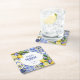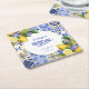 Italian Mosaic Blue Tile Lemons Bridal Shower Square Paper Coaster