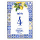 Italian Mosaic Blue Tile & Lemons Bridal Shower Table Number