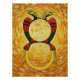 This beautiful, highly textured painting features the ace of Denari (coins) , set against a vibrant, swirling yellow and orange background, belonging to the Italian playing card series.