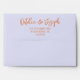 A retro modern bright sky blue and orange wedding envelope. Which features handwritten whimsical cream orange bride and groom's names. And sky blue background colour. And personalised return address . Which suits the whole wedding suite.