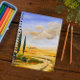 I painted a Italian tuscany cypresses landscape with mountains, wheat fields, flowers and red poppies fields to share my summer feelings and my love to the scenery.