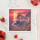 Enhance your wedding décor with these stunning Italian sunset coastal landscape napkins. Featuring bold red and orange hues, they are perfect for a vibrant, romantic celebration.
