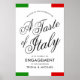 Celebrate your Engagement party and future matrimony by throwing an Italian-style food tasting event. Allow everyone to socialise while tasting the best and most popular dishes of Italian cuisine. This welcome poster features Italian flags stripes framing the top and bottom along with the words "a taste of Italy" towards the centre. All elements of the invitation are unlocked and customisable Including the "A taste of Italy" phrase.