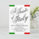 Celebrate your recent matrimony by throwing an Italian-style food tasting event brunch or dinner. Allow everyone to socialise while tasting the best and most popular dishes of Italian cuisine. This invitation features Italian flags stripes framing the side along with the words "a taste of Italy" towards the centre. All elements of the invitation are unlocked and customisable Including the "A taste of Italy" phrase.