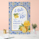 Celebrate the bride to be with a trendy "La Dolce Vita" themed bridal shower invitation featuring a chic arch frame and Italian tile patterns in blue, white, and yellow with citrus lemons and gelato illustrations, reminding you of a sweet and romantic summer in the Mediterranean. Feel free to message me if you need any help with customisation.