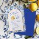 Celebrate the bride to be with a trendy "La Dolce Vita" themed bridal shower invitation featuring a chic arch frame and Italian tile patterns in blue, white, and yellow with citrus lemon gelato illustrations, reminding you of a sweet and romantic summer in the Mediterranean. Feel free to message me if you need any help with customisation.