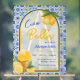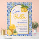 Italian themed bridal shower or bachelorette party sign featuring a chic arch frame and Mediterranean Amalfi coast tile patterns in blue, white, and yellow with citrus lemon gelato illustrations, reminding you of a summer holiday in southern Italy. Feel free to message me if you need any help with customisation.