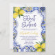 A beautiful Italian-Mediterranean-inspired blue tile design, paired with cheerful hand-painted yellow-green lemons, creates a fresh and modern bridal shower that's sure to impress. It features a modern shape and an elegant brooch script. Impress your guests with this cute, trendy, and unique design that will have everyone talking.