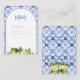 Mediterranean tile and lemon themed enclosure card featuring an arch frame and lemon with blossom arrangement.