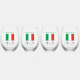 Personalised set of four, stemless wine glasses featuring the red, white and green Italian flag or Il Tricolore. Below is the word ITALY, also in the Italian tricolor. Above is a place for a name, in green letters to add a customised look. Or, create a personalised gift by adding some else's name. Each glass can have a different name. Great for family reunions, travel groups, and clubs.