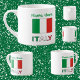 Espresso cup features the red, white and green Italian flag or Il Tricolore. Below is the word ITALY, also in the Italian tricolor.Above is a place for a name to add a customised look in green letters. Or, create a personalised gift by adding some else's name.