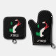 Italy Design Oven Mitt and Pot Holder Set with customisable background colour and text.