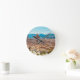 The clock did not take as long to arrive as I thought it might and was extremely well packaged. I didn't do the measurements so I didn't realize it is a little smaller than the average clock but that does not matter (just make sure you check if that's important to you).It is really nifty! It seems very solid and well made not flimsy at all. It has been going well and has kept good time in its few weeks on my wall. Nice product. Gets noticed too! Nicer in real life than the picture but true to the picture