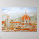italy florence watercolor painting, duomo painting poster