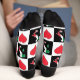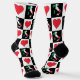 Fun patriotic socks for proud Italians and anybody who loves the great nation of Italy. Featuring a unique black and white chequered pattern with red hearts on the white squares, and the black squares filled in with a map of Italy filled in with the Italian national flag. These are a great way to show your love and support for Italy.