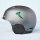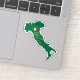 Map outline silhouette of the country of Italy in green with the name Italia in a script font and a small Italian flag.