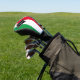 Italy golf head cover with Italian flag colours red, white, and green. Perfect gift for Italian golfers. Customise the initial for a personalised gift.