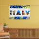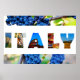 Add some flair to your decor with this Italian travel photos poster featuring photos of the Colosseum in Rome, Cinque Terre, and Tuscany, Italy! A colour collage is imposed over a photo of grapes in a countryside vineyard.