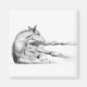 A black and white BIRO illustration of a young foal lying down, then realises it needs to reach an itch on its back leg. By the BIRO Artist ~ Robin Cox.