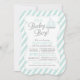 Modern bold & bright sailboat baby shower invitation featuring a cute light green and grey sailboat. Our It's a baby boy nautical invite is set on a pale green diagonal stripe background and has a matching back for an extra special touch. Perfect for a little sailor baby shower
