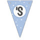 It's a Boy! blue and white bunting flags for baby nursery decorations. Stars and stripes combined with traditional baby boy colour combo to hang over a carrier, children's bed or a party station. There are stickers, blankets, pillows, baby bibs and so much more available.
